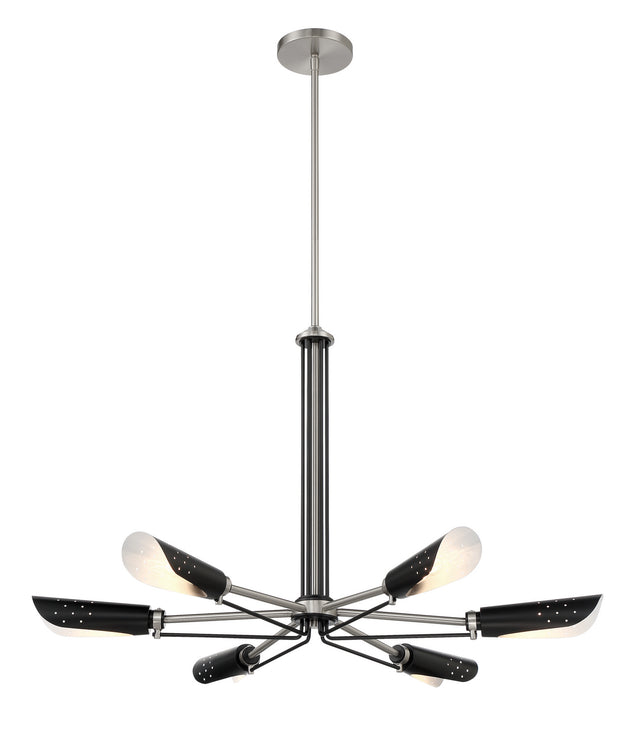 Turbine Six Light Chandelier in Coal With Brushed Nickel