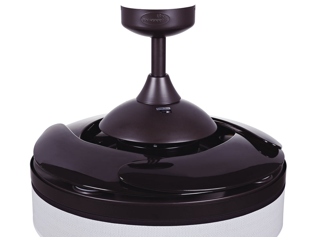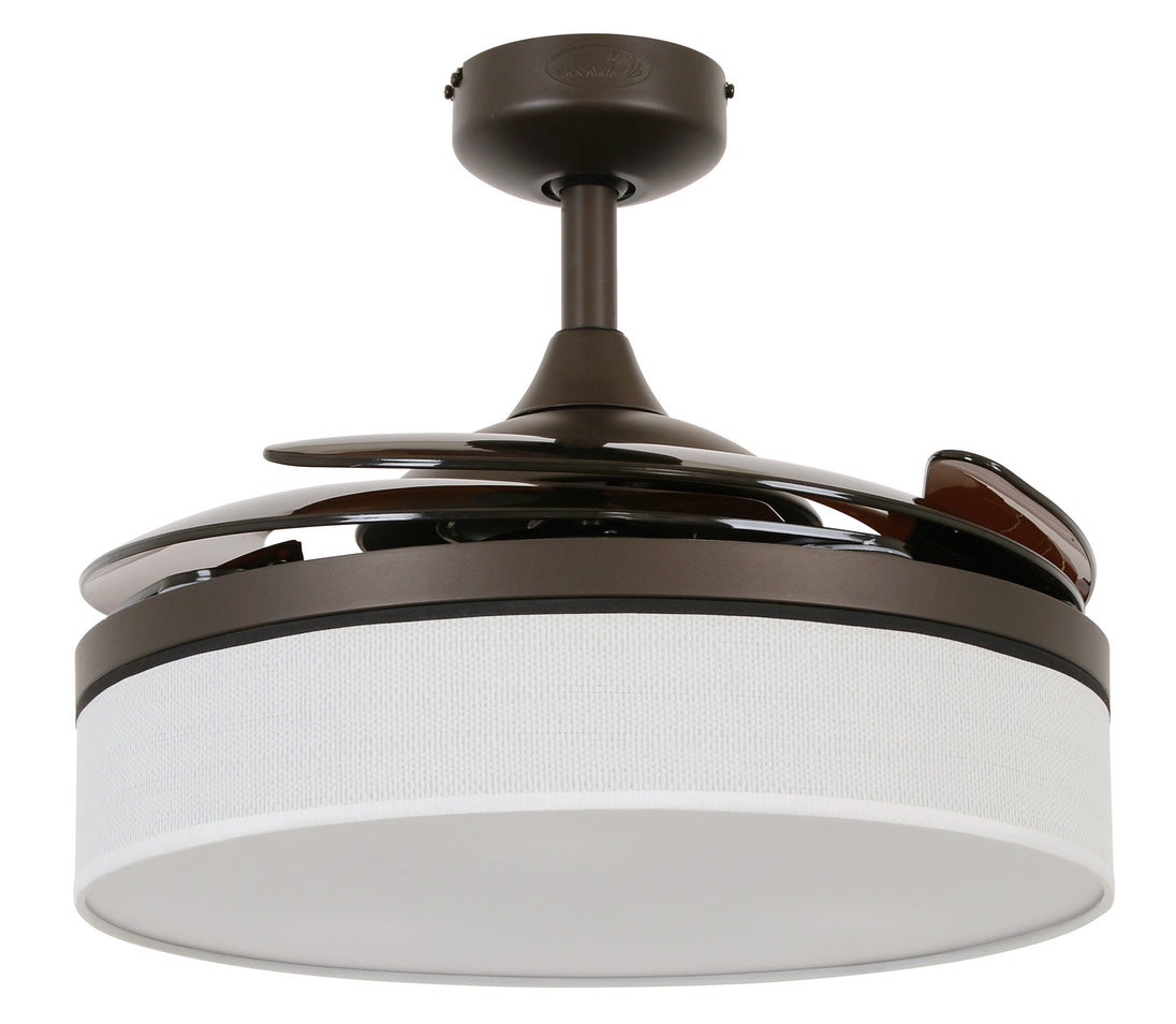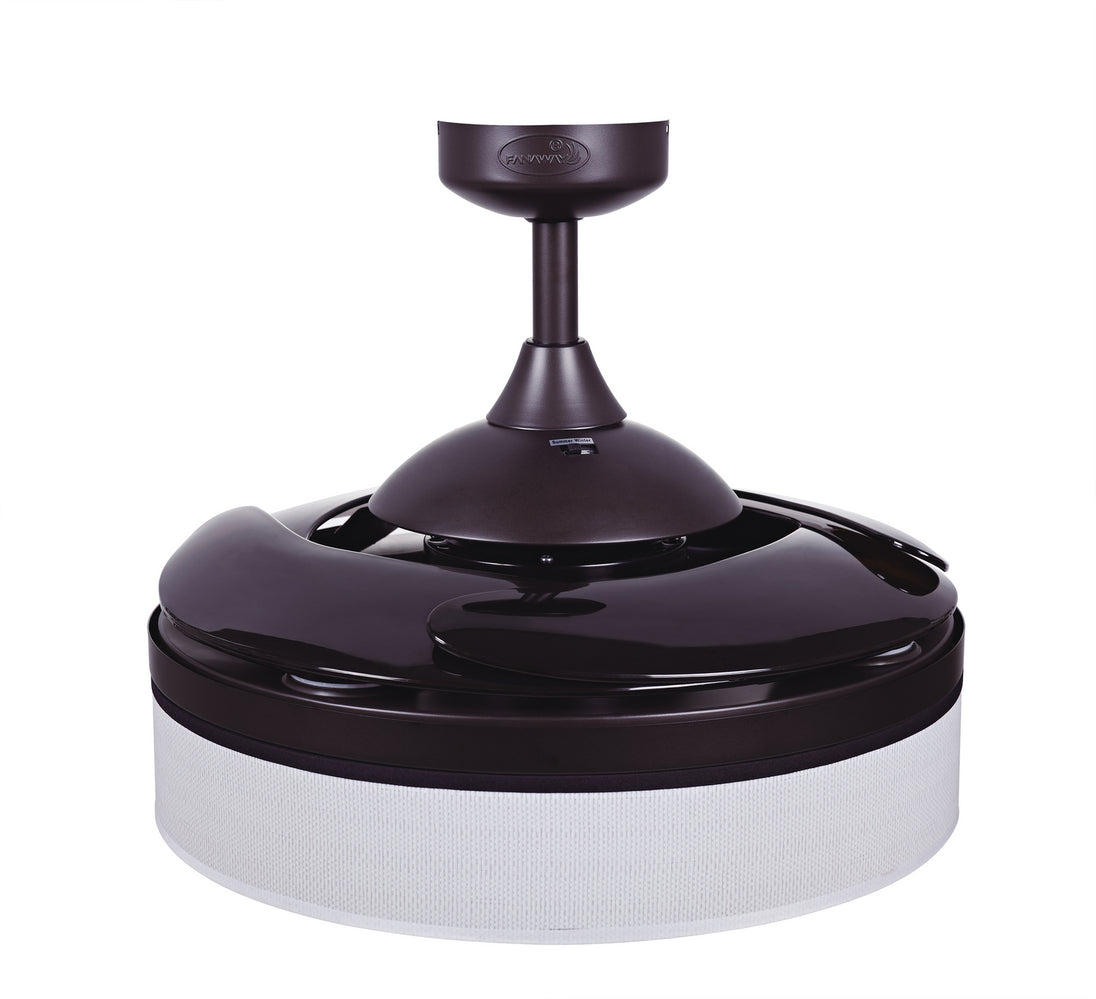 The Australian Original FANAWAY Fraser Oil Rub Bronze with Amber Blades is an advanced ceiling fan with unique aesthetics and energy efficient design. Switched off, the traditionally intrusive fan blades automatically retract and conceal, transforming the unit into a stylish linen drum light pendant. It creates open space in the room environment, accumulates less dust, and is unobtrusive and versatile to visually integrate into all rooms of you home. The fan comes with a dimmable LED light, 3 speed remote control, winter/summer mode and wall mount for you to personalize your experience. The star of this Fanaway design is the light kit which has a hand-crafted white PVC linen shade that is not only beautiful but easy to clean. The frosted acrylic diffuser at the bottom softens the glare of light and guarantees gentler illumination. Additional downrods lengths sold separately: 12``, 24`` and 36`` - 51107012, 51107024, 51107036. US Patent 8317470, US Patent 8807938, US Patent 8790085, US Patent 9255584, US Patent 8851841. Set includes: One (1) ceiling fan with remote control. Material: Metal (fan housing) and PC - Polycarbonate (blades) . Finish: Oil Rubbed Bronze. Ceiling fan dimensions: 15.75 inches high x 48 inches wide x 48 inches deep. Blade dimensions: 17.7 inches length x 4.1 inches width, Blade color: Amber. Winter/Summer mode manual switch. Motor size (inch): D153 x 15. Airflow(CFM): 4172.69. Number of speed: 3. Power Consumption Average(wattage): 60. Motor Wattage: 60W. Include 3 x 10W E26 Base A19 LED bulbs included, each bulb 2700K 800LM. Socket: E26, Dimmable. RPM H/M/L (motor speed): 223/163/122. Fan Watts when used at high speed: 60W. Voltage: 110V. Ceiling Fandimensions: 15.75 inches high x 48 inches wide x 48 inches deep. This product will ship to you in one (1) box. Accessories pictured are NOT included. Assembly required.