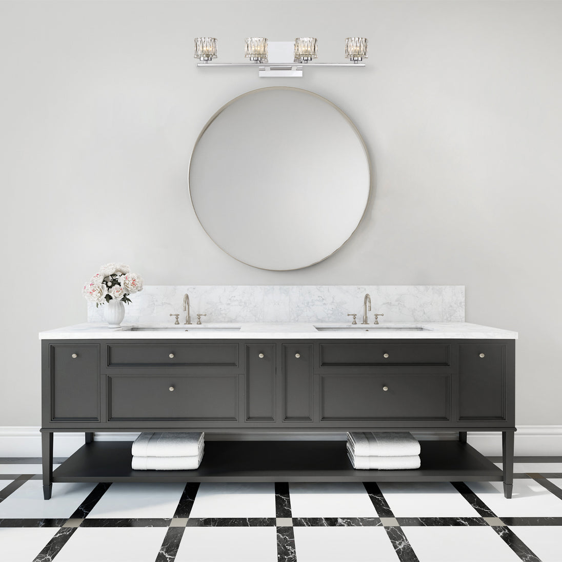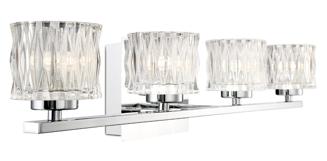 Diamond-shaped patterned glass shade mounted on chrome hardware