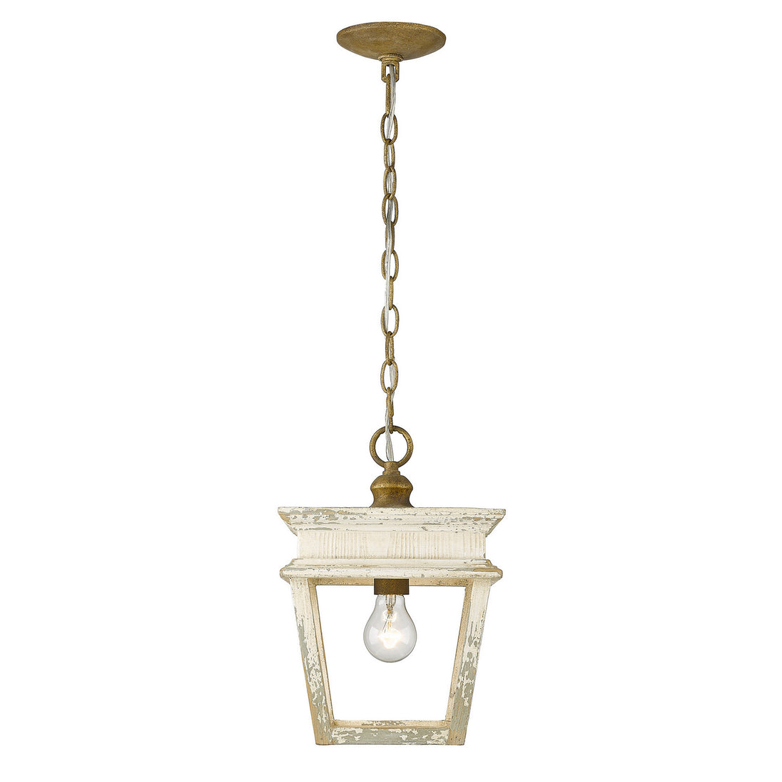 The Haiden Collection features lantern style fixtures in a Burnished Chestnut metal finish. The complex bronze finish is paired with a complementary gray distressed wood frame. The trendy mix of materials makes this pendant the perfect cross between cozy farmhouse and clean modern style. This mini pendant can be mounted alone or arrayed in a group.