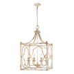 The Laurent Collection features elegant, cage-style fixtures. This four-light pendant is finished in a multi-layered antique ivory with a rusty, gold patina that takes you back in time. The transitional style of this pendant will fit perfectly with your farmhouse design. Pendants create stylish focal points and this 4-light pendant is comfortably sized for a cozy dining room, nook, or entry.