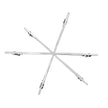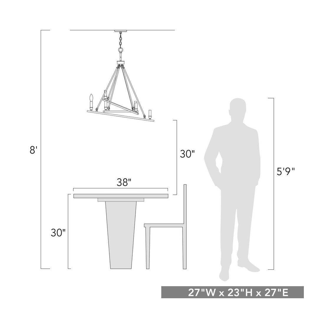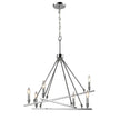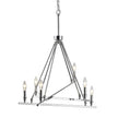 Strong, linear lines intersect, gracefully creating a balanced airy feel. In Garvin's unexpected and playful design, asymmetrical arms are juxtaposed to imply movement. Slender candles enhance the fluid look which seems to defy the sturdy steel construction. This clean, creative design will liven transitional to modern decors. This 6 light chandelier is comfortably sized for a dining room and is a stylish focal point.