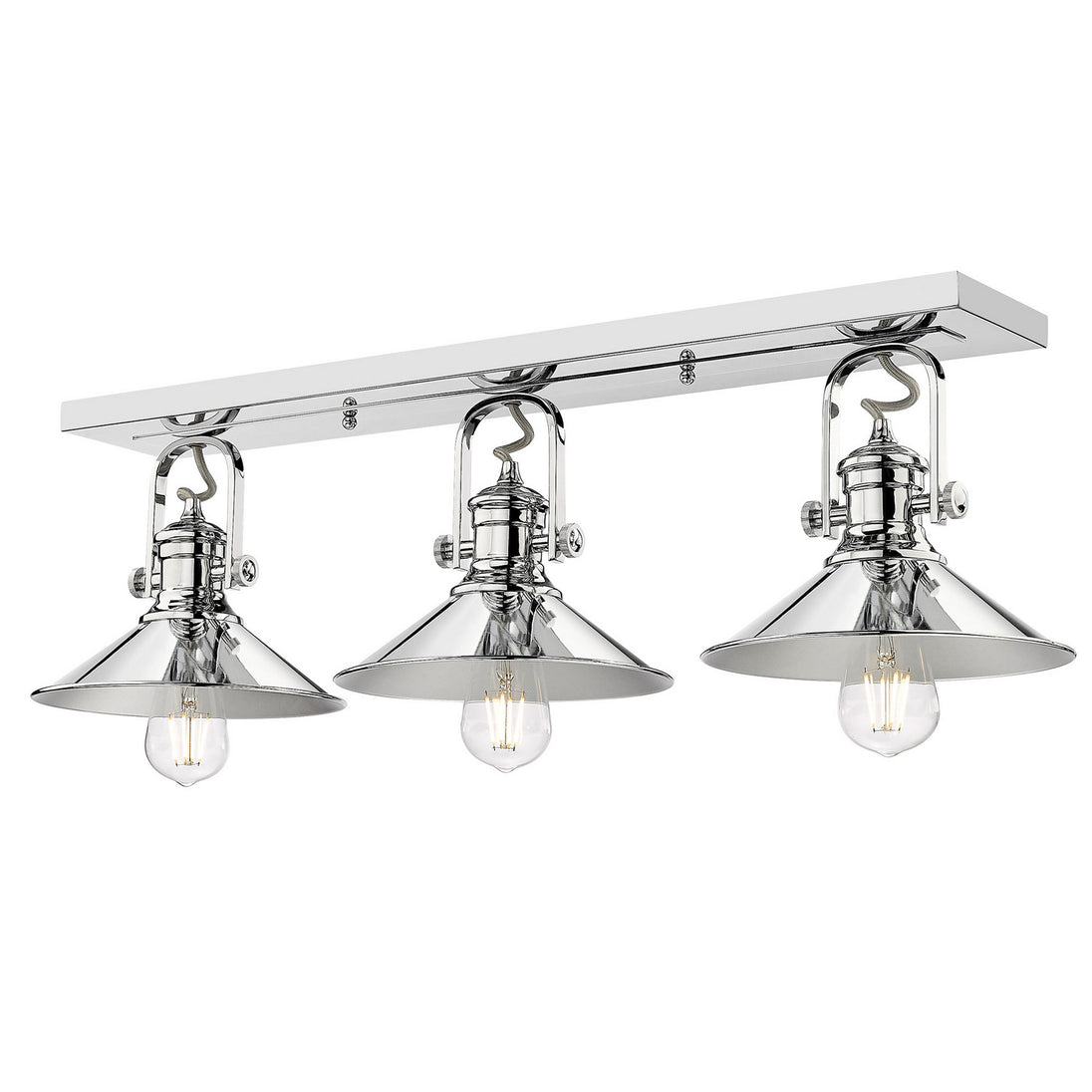 The coastal influence on the Kleine collection's bold design is obvious. The transitional style is a combination of a traditional silhouette with a modern chrome finish. For a timeless appeal, these vintage-industrial fixtures feature pivoting truncated shades and cool retro details. The exposed bulbs are on full display. Mount the simple backplate on the wall or ceiling, and angle the lamps to suit your needs. These versatile nautical-inspired fixtures are a great fit for lots of styles.