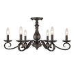 Conventional style in a compact design, Larrick is a decorative option for large spaces with low ceilings. This multi-light semi-flush chandelier has a low profile with wide arms for widespread illumination. Finished in Rubbed Bronze, the turned center column and decorative canopy reinforce the boldly traditional look of curved arms, wide cups, and candelabras. Hang this oversized, close-to-ceiling fixture in traditional to transitional rooms.