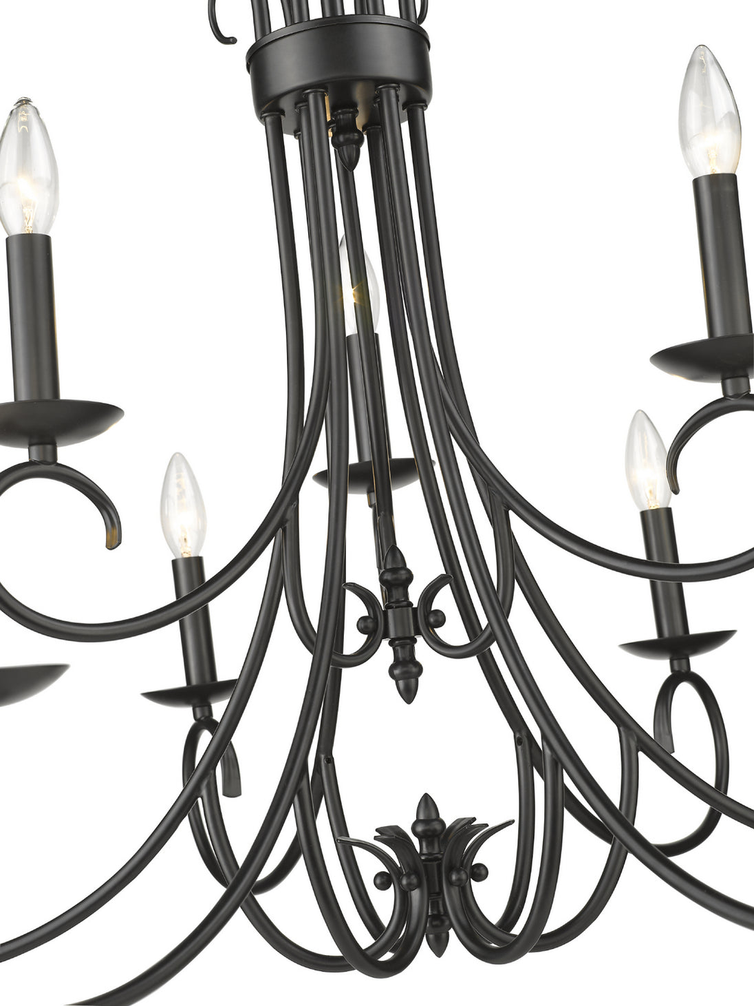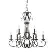 Earthy tones and organic lines make the Homestead collection a comforting addition to the transitional style home. Whether the decor is eclectic, casual, or even traditional, Homestead pieces blend well in cozy environments. Available in multiple finishes, these options give depth and weight to the collection's delicately curved arms. A selection of glass options partner perfectly with these finish options. This 2-tier, 9-light candelabra chandelier with candlesticks creates a dramatic focal point graciously sized for taller living and dining areas.