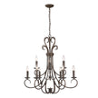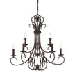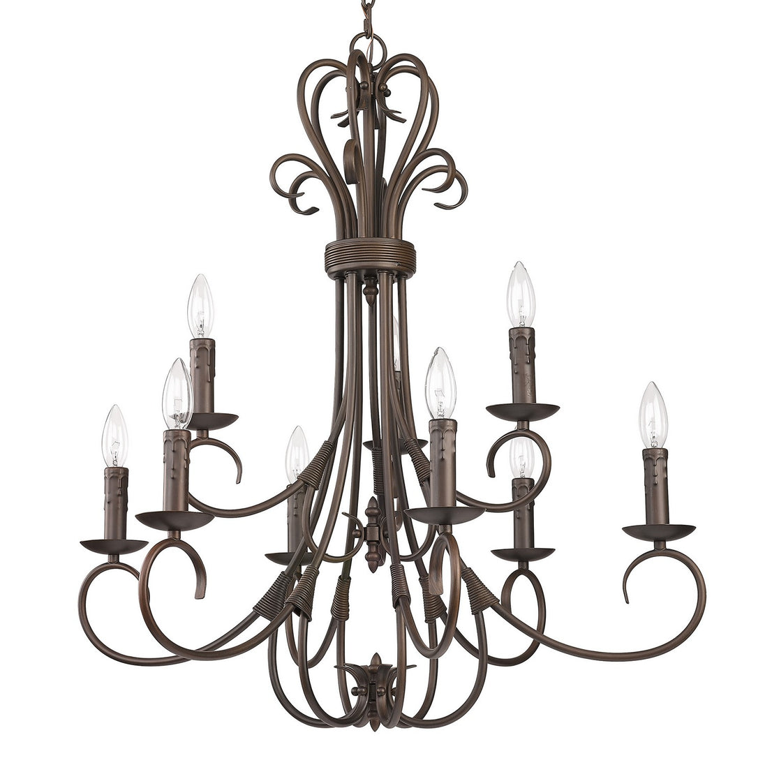 Earthy tones and organic lines make the Homestead collection a comforting addition to the transitional style home. Whether the decor is eclectic, casual, or even traditional, Homestead pieces blend well in cozy environments. Available in multiple finishes, these options give depth and weight to the collection's delicately curved arms. A selection of glass options partner perfectly with these finish options. This 2-tier, 9-light candelabra chandelier with drip candlesticks creates a dramatic focal point graciously sized for taller living and dining areas.