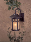 The arts and crafts style is highlighted by double french scavo glass that provides warmth while accentuating the details of this family.
