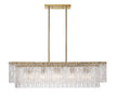 Embracing a glam aesthetic with surprising bold design elements, this five-light island light becomes a focal point in any modern or transitional space. The Glacier island light offers a decadent look of individual textured glass panels that emulate melting ice, an extraordinary effect with dramatic impact in a kitchen or bar setting. Lush modern gold finish steel creates a chic frame and canopy, adding consistency in both style and finish, embellishing the optical delight accomplished when the fixture is illuminated.