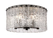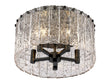 Artistry joins industrial minimalism to produce a compelling look in light fixtures that work in both modern and transitional settings. The Glacier five-light flush mount ceiling light offers a decadent look of individual clear textured glass panels that emulate melting ice, an extraordinary effect with dramatic impact in a kitchen or bar space. Matte black finish steel is placed as a crown frame, adding a contrast in both style and finish and embellishing the optical delight accomplished when the fixture is illuminated.