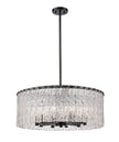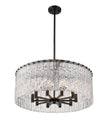 An enticing option for both modern and transitional spaces, this decadent fixture becomes a focal point in design and lighting. The Glacier round ten-light pendant delivers a gallery aesthetic with individual clear textured glass panels that emulate melting ice, a chic design with dramatic impact. Matte black finish steel is placed as a crown frame, providing tantalizing contrast and enhancing the gallery feel of a foyer, dining room, or main living area.