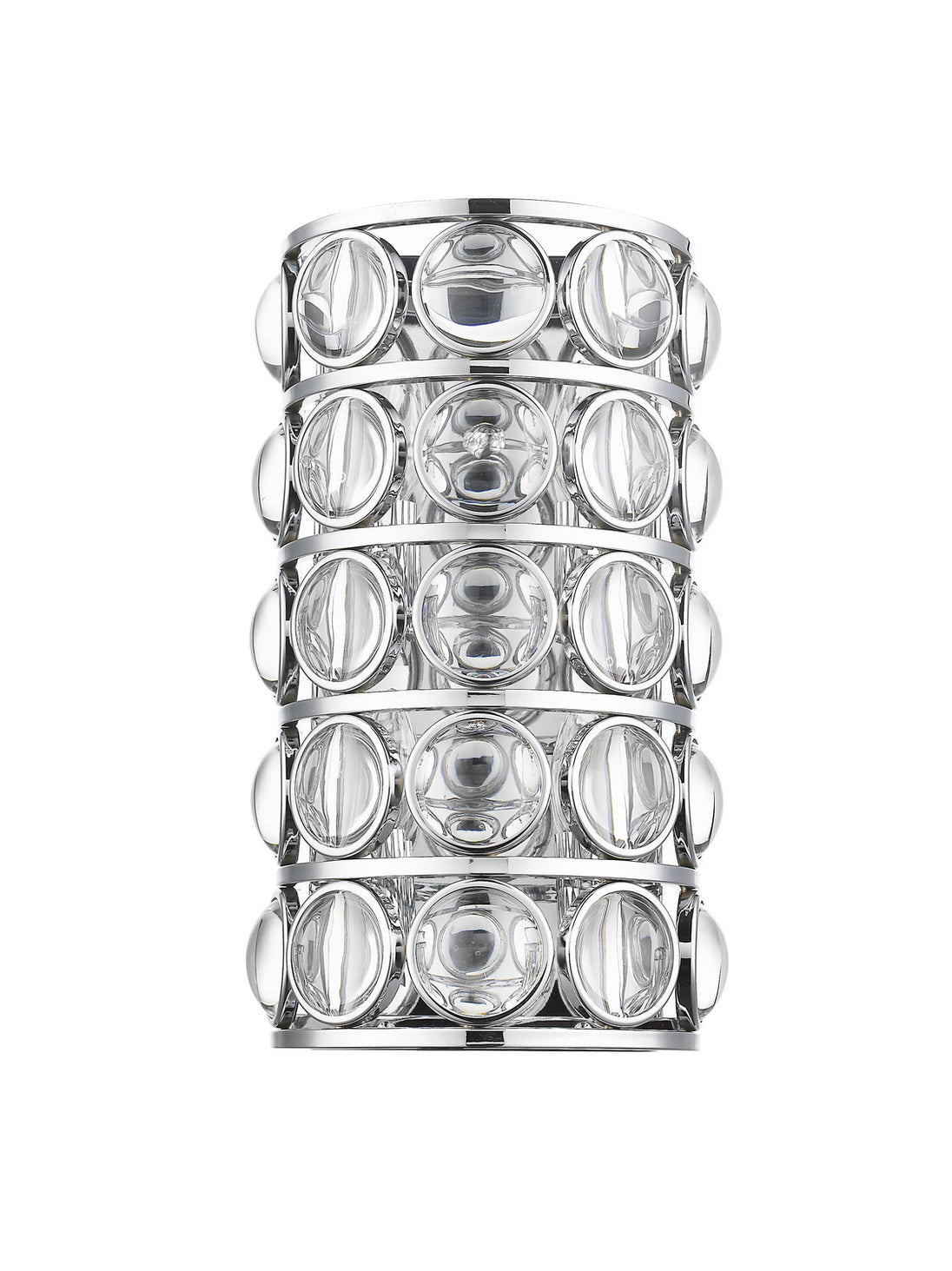 Cast a multidimensional glow with the rounded crystal accents on this rounded light shade. Sleek and clean, the lines of the silhouette are streamlined by a shiny chrome finish.