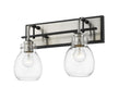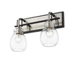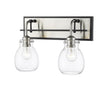 Charmingly bright, this two-light wall sconce features a clear glass shade. Full of curves and sleek lines, matte black and brushed nickel combine to create a stunning visual.