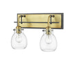 Jazz up a transitional space with an exceptional fixture that delivers warmth and beauty. Enjoy a dramatic matte black and olde brass finish over a rectangular mount, and clear glass shades that make this two-light wall sconce an excellent option.
