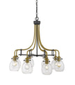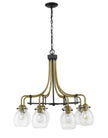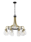 Revel in the romantic feel of olde brass and clear shades from this eight-light chandelier. Complete with interesting curves and delicate details, this elegant fixture looks great in an entryway.