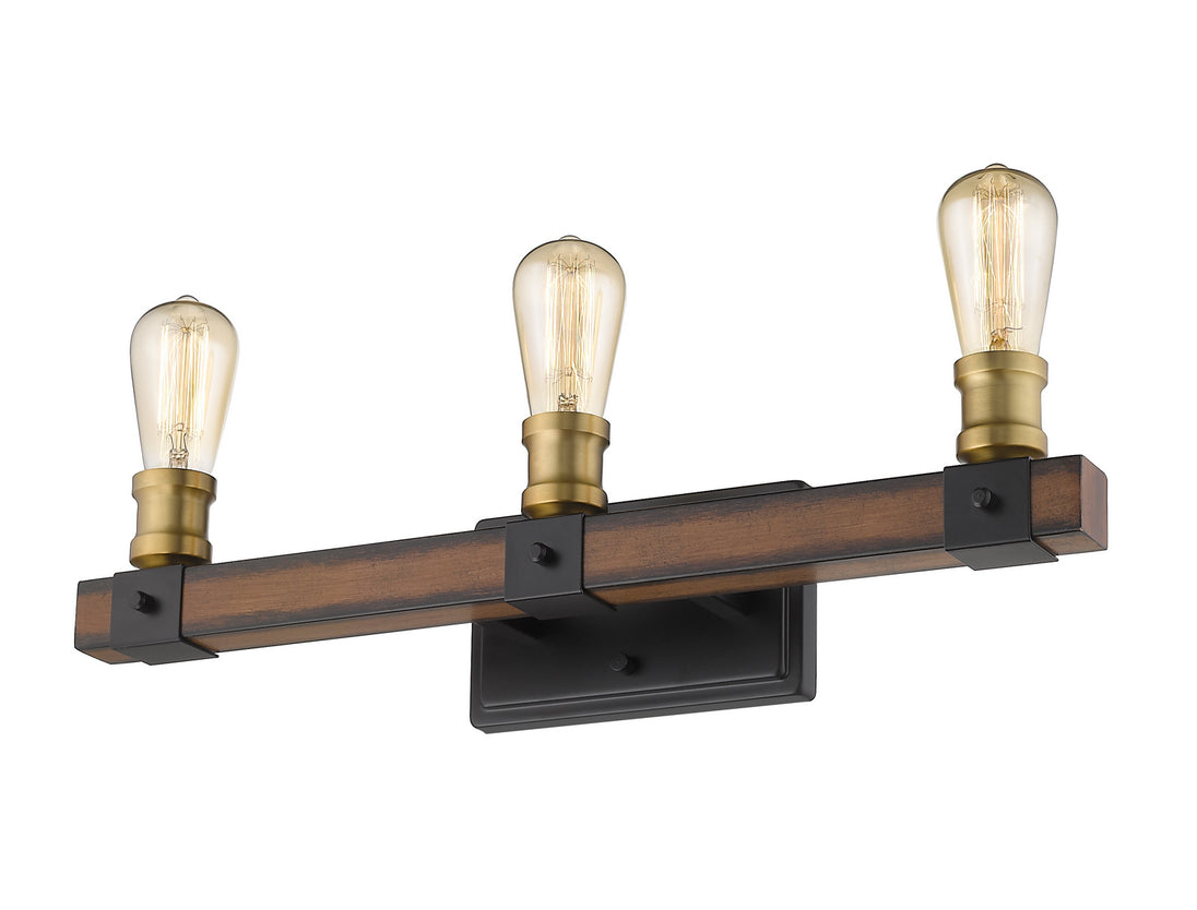 With a clean base, this three-light wall sconce celebrates modern style. Constructed of faux barnwood, the elongated silhouette boasts a rich and warm rustic mahogany finish.