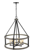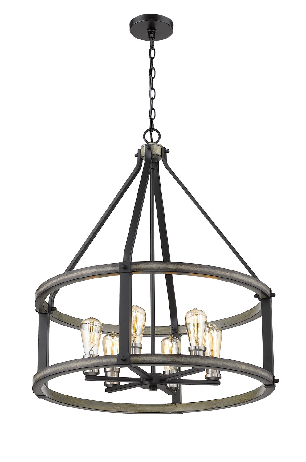Featuring a cage-inspired frame, this six-light pendant light completes a modern motif. The faux barnwood construction is sleek with an ashen hue and exposed lightbulbs.