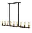 Exposed lightbulbs and deeply hued hardware marry in this seven-light pendant light to create a brilliant visual. The elongated faux barnwood frame dons a rustic mahogany finish to add depth and charm.