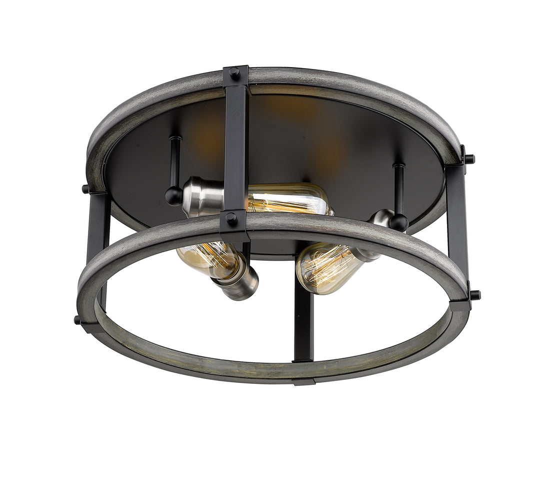 Trek back to a past era and embrace a fun industrial theme with a hint of farmhouse style. Crafted from faux barnwood with an ashen finish, this round three-light ceiling light dresses up a casual space with a desirable rustic flavor.