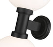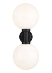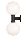 A delightful dose of Mid-Century Modern whimsy turns exterior spaces into showcase settings when this outdoor fixture takes its place. From the Laurent collection comes a two-light outdoor wall sconce offering a retro-influenced motif and a dose of Art Deco attitude. Opal white glass globe shades position on either side of a black finish aluminum frame, providing eye-catching palette contrast and a charming way to illuminate a patio, porch, or deck area.