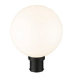 This one-light outdoor post mount fixture from the Laurent collection embodies the whimsical creativity famous in Mid-Century Modern designs. Emulate a retro feel in a front yard or walkway with this epic light fixture fashioned of versatile black finish aluminum in a simple yet sophisticated base. A charming opal glass globe shade steals the show with artistry and festivity.