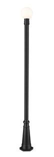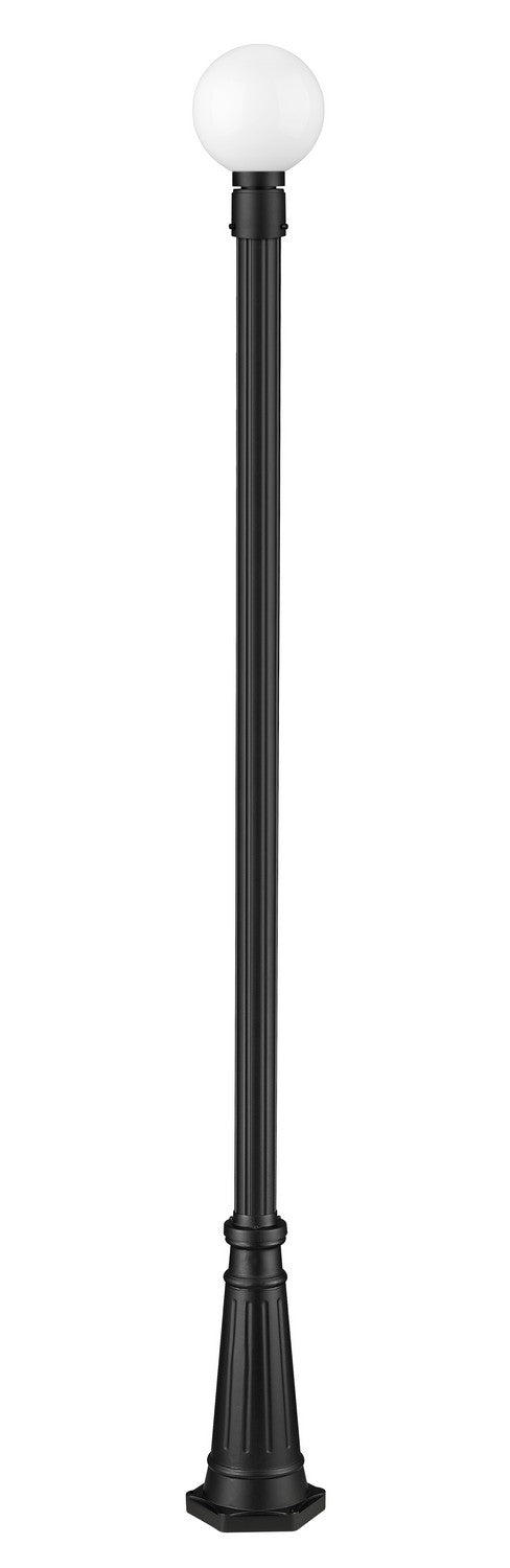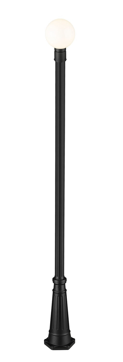From the Laurent collection comes a decorative exterior light that completes an attractive outdoor setting with a dose of Mid-Century Modern style. This one-light outdoor post mounted fixture maintains a simple palette of black and white with a black finish aluminum post and a petite opal glass globe. Ornate artistry on its post base creates proportionality and offers an olde town village feel.