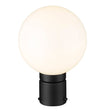 From the Laurent collection comes a classic look in exterior lighting rooted in Mid-Century Modern fare. This one-light post mount fixture maintains an elegant simplicity with an aesthetic reminiscent of retro village charm. Crafted of black finish aluminum, its simple base is made more festive when topped with a whimsical opal glass globe, creating artistry in lighting.