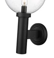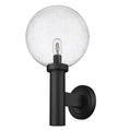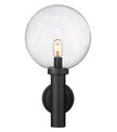 Indulge in a classic look of Mid-Century Modern attitude with an exterior light perfect for an updated house structure or deck space. From the Laurent collection comes a one-light outdoor wall sconce with a linear and circular blend of silhouetting. A simple yet tasteful black finish aluminum frame and wall plate hosts a chic globe shade fashioned of delicate clear seedy glass.
