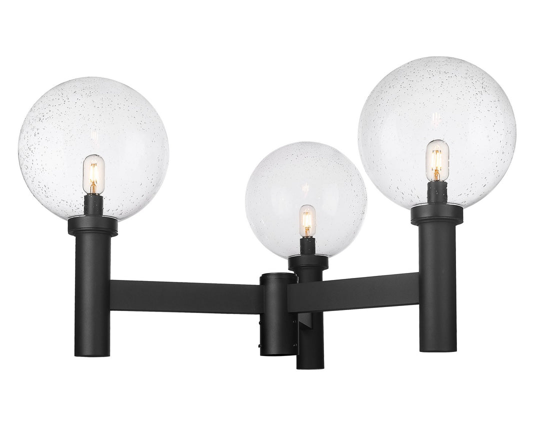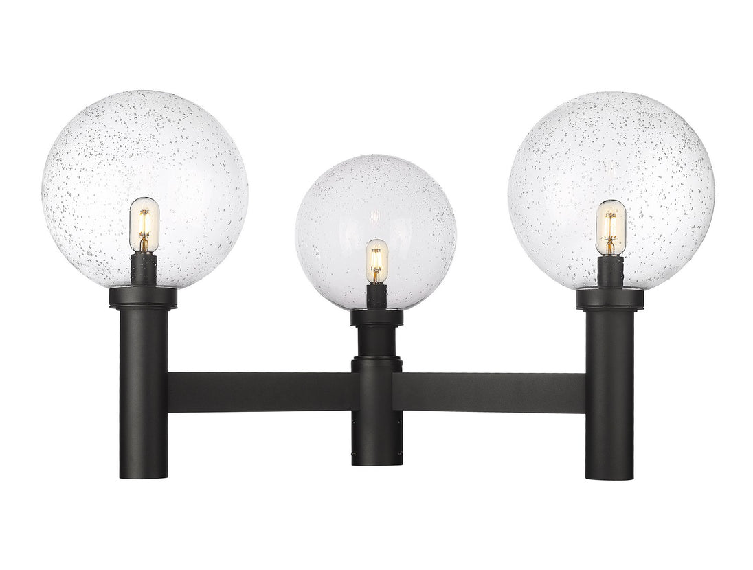 Simplicity plays it cool with a bit of linear style in a fixture perfect for a transitional exterior motif. From the Laurent collection, this three-light outdoor post mount fixture preserves a classic village aesthetic with extra whimsy. A black finish aluminum frame makes a stunning venue to host three delicate clear seedy glass globe shades, creating an artistic and festive look.