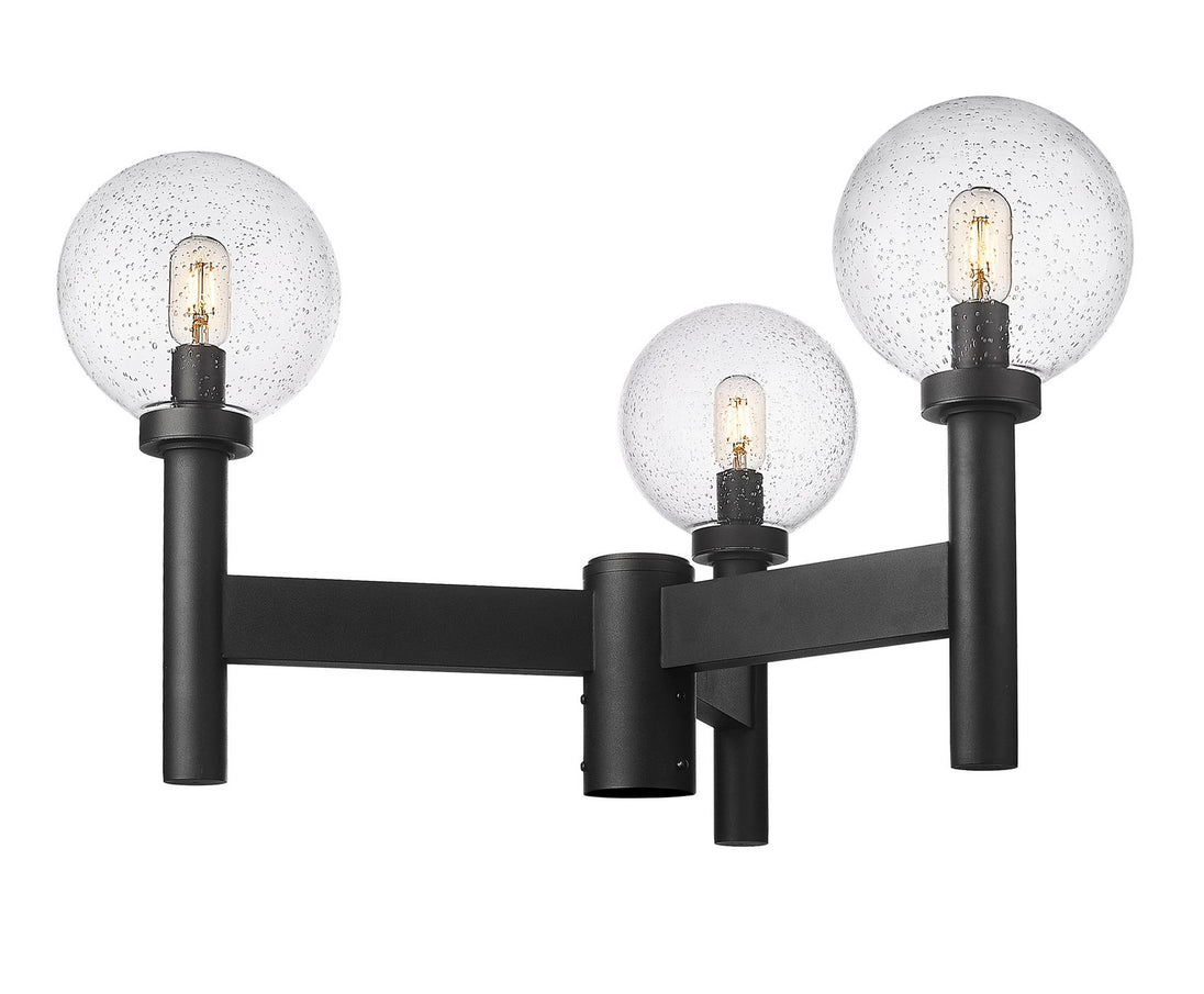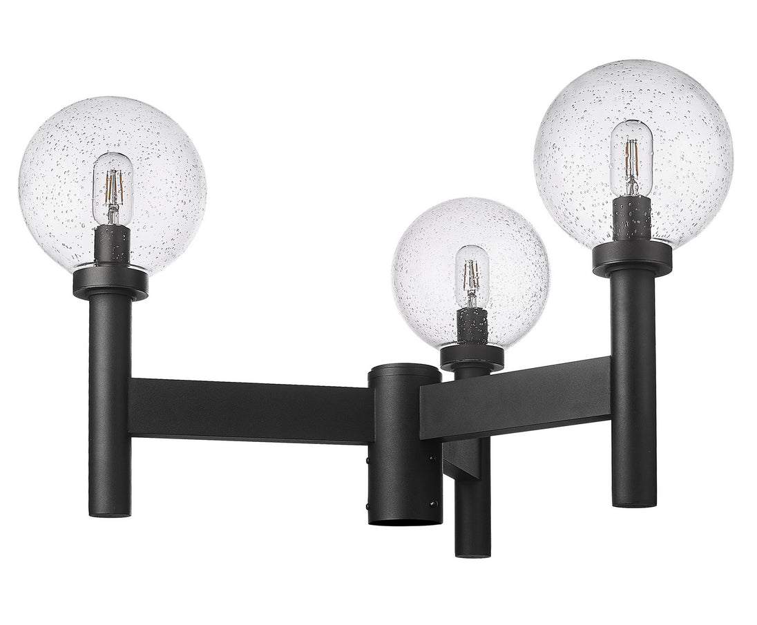 Extend the careful design focus from interior spaces to the outside with a fashionable and chic light source. From the Laurent collection, this three-light outdoor post mount fixture preserves a classic village aesthetic with a sophisticated, straightforward linear aesthetic. A black finish aluminum frame makes a stunning venue to host three delicate clear seedy glass globe shades, creating an impressive festive look.