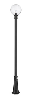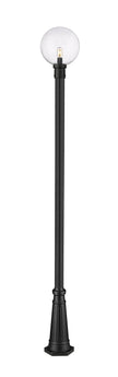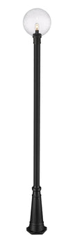 Dabbling in the classic vibe of Mid-Century Modern fare, this one-light outdoor post mounted fixture is a mainstay in overall design standards. Emulate a retro feel in a front yard or walkway with this epic light fixture fashioned of versatile black finish aluminum in a frame with an ornate tapered base. A delicate clear seedy glass globe creates ultimate elegance.