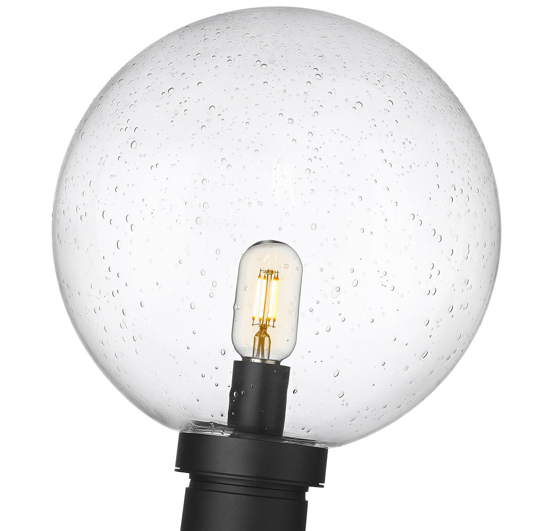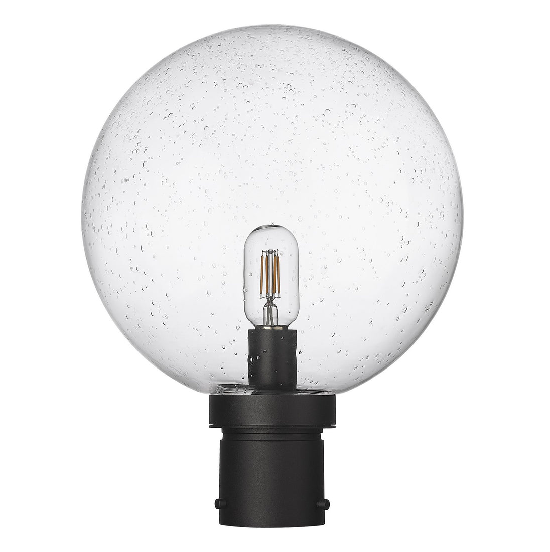 Preserve a simple and sophisticated motif in a quest to supply exterior lighting. This one-light outdoor post mount fixture from the Laurent collection maintains a straightforward design with an aesthetic reminiscent of retro industrial charm. Crafted of black finish aluminum, its simple base is made more festive when topped with a delicate clear seedy glass globe, creating artistry in lighting.