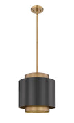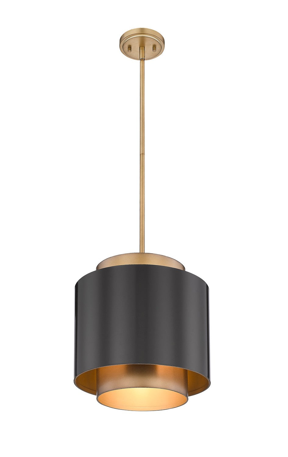 A layered, double drum design creates a bold, designer look for the impressive Harlech collection one-light pendant. Beautiful over an entry or in series over a kitchen island, the pendant boasts a warm rubbed brass inner drum, with a shorter, wider bronze finish drum layered on top. Walking the line between modern and industrial design motifs, this steel fixture is a charming addition.