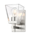 Flared glass perfectly accentuates the clean precision of a modern one-light wall sconce. From the Lauren collection, this sleek design is deceptively simple, delivering a flared clear glass shade topping a clean-lined frame in a gleaming brushed nickel finish that offers contemporary ambiance to a wide variety of spaces and interior designs.