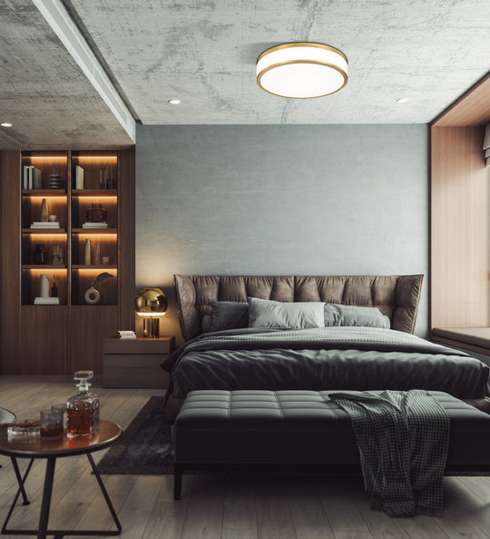 1 Light Flush Mount Stylish metal banding in a choice of a Brushed Nickel, Matte Black, and Modern Gold finish brings a touch of sophistication to the Ballord flush-mount, which will provide dimmable ambient light to...Regular price $246.00 -