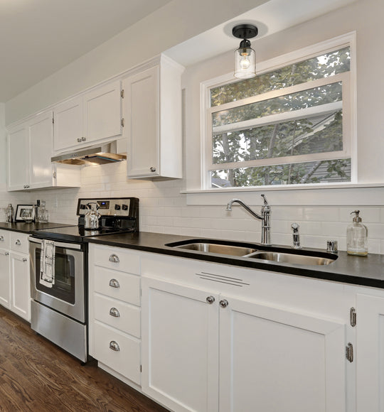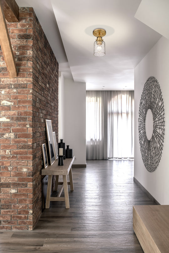 1 Light Flush Mount The industrial-inspired Kinsley Collection of pendant and vanity fixtures uses simple, artisanal detailing to create a timeless statement. The vintage-influenced craftmanship is finished in a choice of Brushed Nickel, Matte Black, Chrome,...Regular price $96.00 -