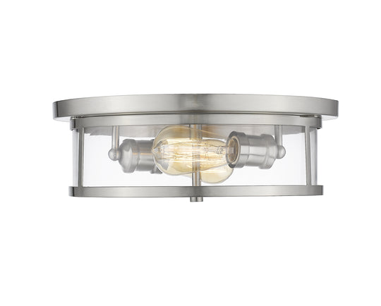 2 Light Flush Mount The contemporary Savannah family adds sophistication to home décor. The beautifully appointed brushed nickel fixtures are perfectly paired with clear glass shades. Soft sweeping lines create an elegant focal point in this...Regular price $206.00 -