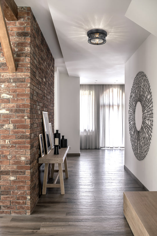 2 Light Flush Mount The Clarion family features slim detailing and wide cylindrical waterglass shades to create a transitional design that blends in with most of today’s designs. The waterglass shades are highlighted by the most...Regular price $216.00 -