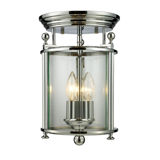 3 Light Flush Mount --- With traditional styling and modern application this flush mount is as versatile as it is stunning. Glass panels form the circular cage that is suspended from chrome hardware. Suspended inside are...Regular price $113.10 -