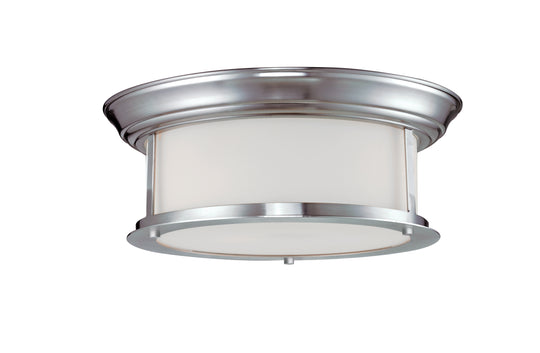 2 Light Flush Mount --- This two light lamp, with a brushed nickel finish and matte opal glass, rests flush to the ceiling and is a perfect fit in today's modern home. Specifications Style Number 2002F13-BN...Regular price $93.60