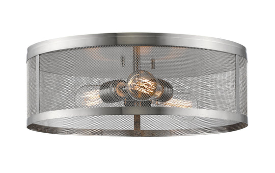 3 Light Flush Mount --- Bold yet sleek, the Meshsmith collection create a statement of contemporary minimalism with a mix of the vintage industrial. Vintage bulbs (not included) glow behind the forged meshwork. Finishes include Brushed...Regular price $144.30