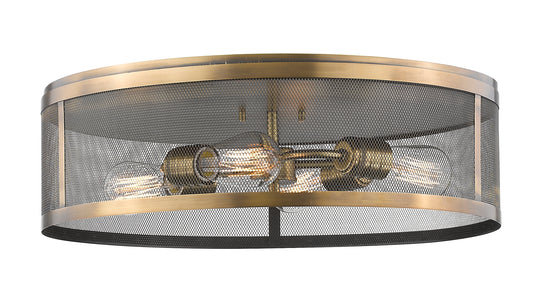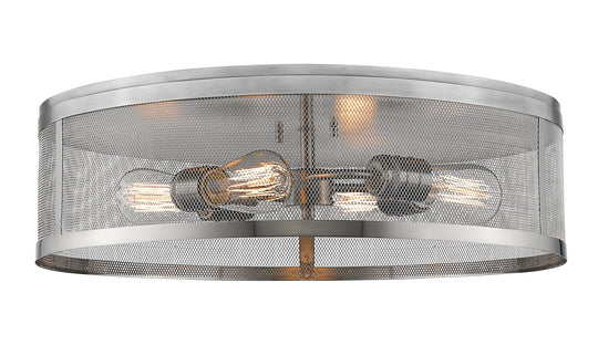 4 Light Flush Mount --- Bold yet sleek, the Meshsmith collection create a statement of contemporary minimalism with a mix of the vintage industrial. Vintage bulbs (not included) glow behind the forged meshwork. Finishes include Brushed...Regular price $227.50 -