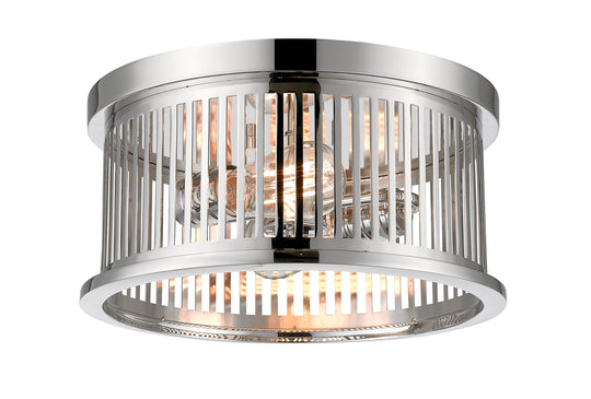 2 Light Flush Mount The Camellia collection offers a stylish blend of edgy industrial and contemporary linear design motifs. Steel frames in round and squared shapes are treated to lovely finishes in brushed nickel, brass, and...Regular price $114.40 -