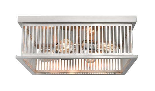 2 Light Flush Mount The Camellia collection offers a stylish blend of edgy industrial and contemporary linear design motifs. Steel frames in round and squared shapes are treated to lovely finishes in brushed nickel, brass, and...Regular price $114.40