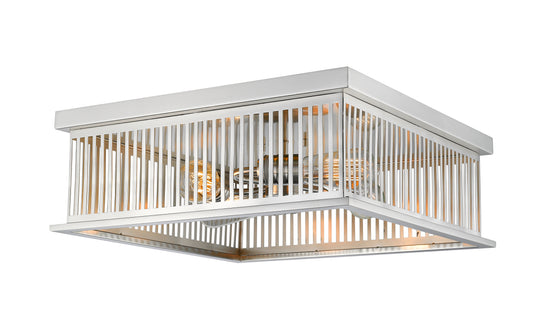 4 Light Flush Mount The Camellia collection offers a stylish blend of edgy industrial and contemporary linear design motifs. Steel frames in round and squared shapes are treated to lovely finishes in brushed nickel, brass, and...Regular price $162.50 -