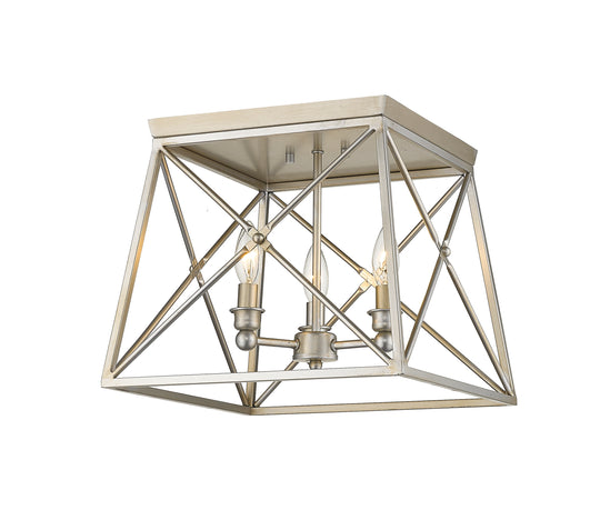 3 Light Flush Mount Featuring forged trestle patterns fashioned after iron train bridges of another era, this collection has been a best seller, and is now updated in a Matte Black finish with a rich Old...Regular price $165.10 -
