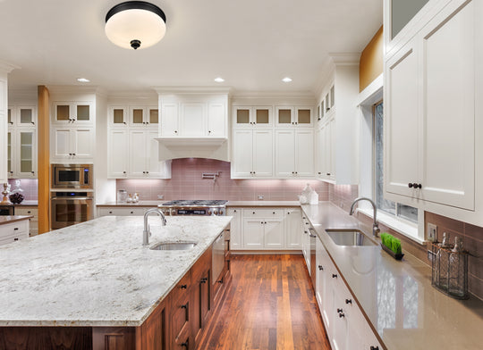 2 Light Flush Mount --- Oblate glass shades influenced by the school house globes of old, the Amon family puts a contemporary spin on a traditional classic. Vintage inspired seedy glass paired with sleek modern finishes...Regular price $80.60 -