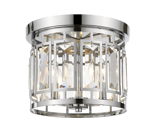 3 Light Flush Mount --- Add a touch of sophistication and class to any space with this chrome finish steel flushmount ceiling light. Ornate rectangular shapes form a mount for three candelabra-style bulb bases shielded with...Regular price $231.40 -