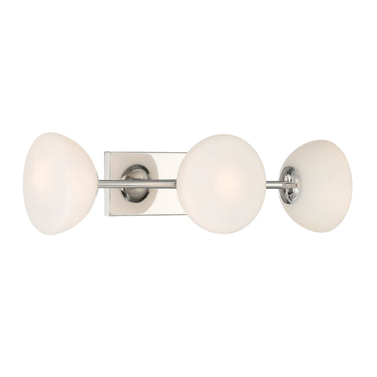 Vendor: Designers Fountain Zio Three Light Vanity in Polished Nickel The Retro vibe of the Zio collection is reinforced by the puff-shaped Etched Opal Glass shades and the luxurious Polished Nickel finish. Combine these unique lighting pieces with Modern, Mid-Century Modern, or Glam interior designs for...Regular price $0.00