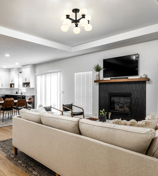 10 Light Semi Flush Mount The Artemis Collection of luminaires boasts a Mid-Century Modern vibe that can complement many of today's popular design styles, from the pared-down simplicity of a Scandinavian-style living room to a classically...Regular price $304.00