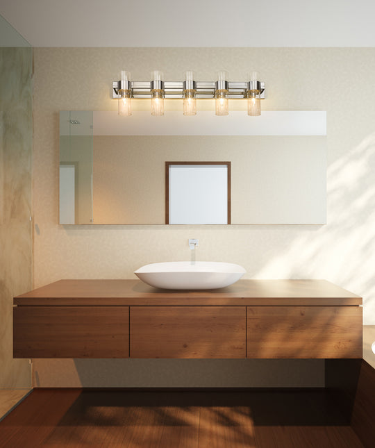 5 Light Vanity With jewelry-like cuffs clasping the transparent glass cylinders surrounding the light source, the Lawson series balances its boldness with the slender aesthetic of the glass to create a timeless look that can suit...Regular price $386.00 -